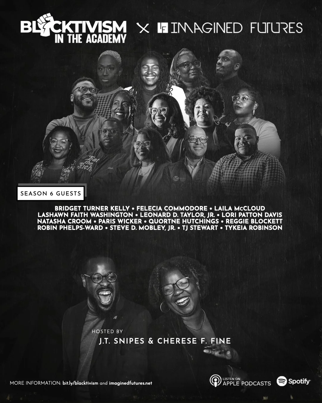 Blacktivism in the Academy (BIA) is a joy-filled podcast for scholar activists by scholar activists! BIA illuminates the voices of Black scholars to examine the complexities of Black life and scholarship in the academy and beyond. In collaboration with Imagined Futures, BIA Season 6 focuses on creative community, scholarly partnerships, and the community Black scholars are building in the academy.